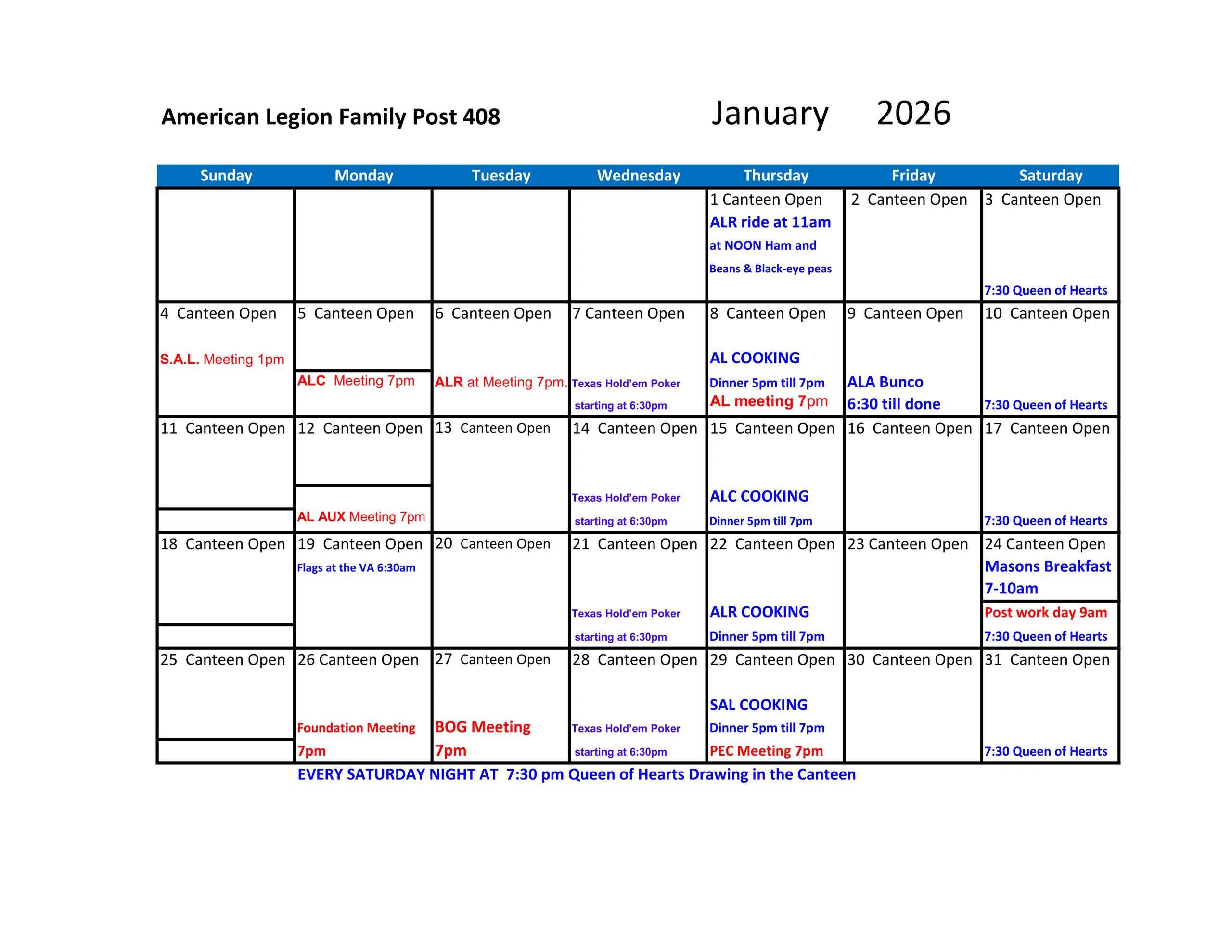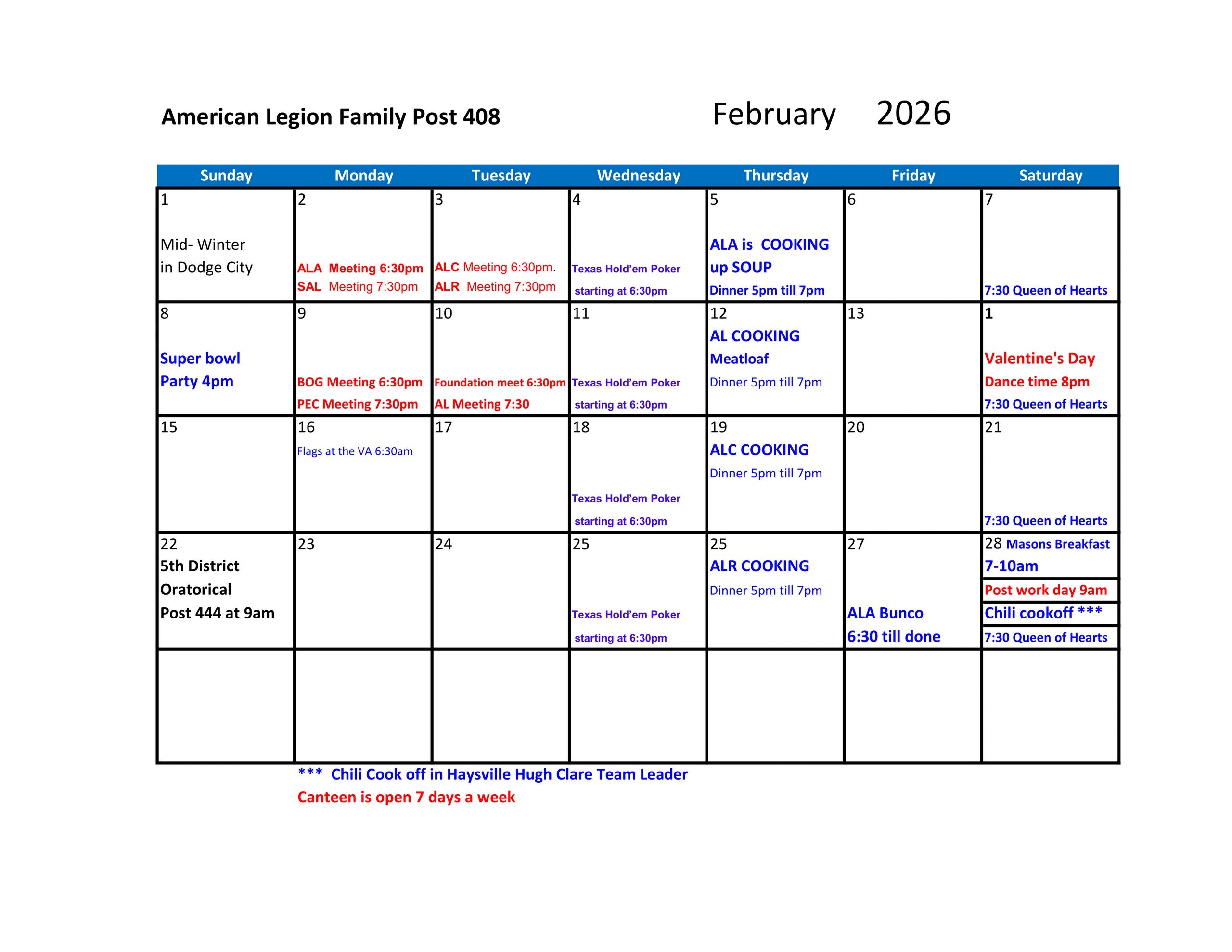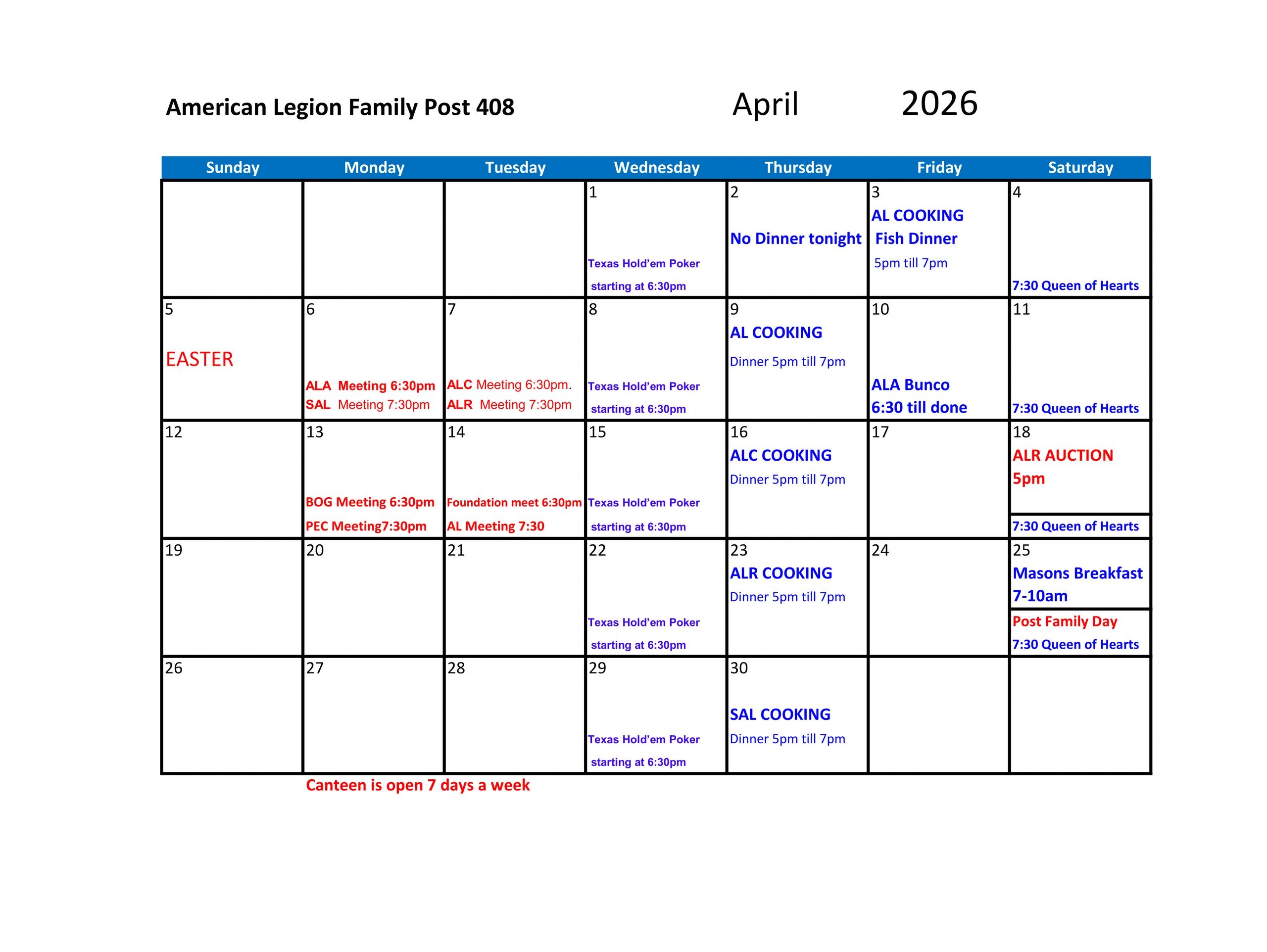 Our American Legion Family consists of members from the American Legion, American Legion Auxiliary, Sons of the American Legion and the American Legion Riders in conjuction with our local community to assist veterans and their families.